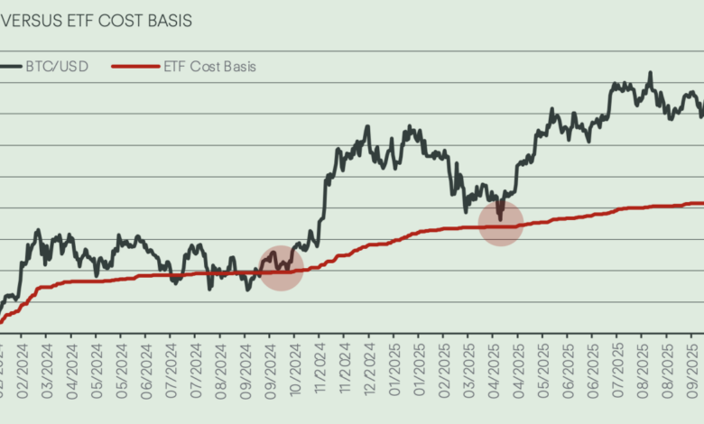 شرکت تحلیلی ک.پر (Copper) بر این باور است که بیتکوین در سالهای ۱۴۰۳ و ۱۴۰۴ یک الگوی تکرارشونده و قابلتشخیص را دنبال خواهد کرد. بر اساس این الگو، قیمت بیتکوین به اوجهای تاریخی جدیدی میرسد و سپس با اصلاحاتی شدید مواجه میشود. در ادامه، پیش از آغاز فاز رشد بعدی، قیمت در نزدیکی بهای تمامشده سرمایهگذاران ETF حمایت میشود. این الگوی جدید که «چرخه بازدهی مبتنی بر بهای تمامشده» نامیده میشود، به نظر میرسد جایگزین چرخههای قدیمی شده است و میتواند به عنوان راهنمایی برای سرمایهگذاران عمل کند.