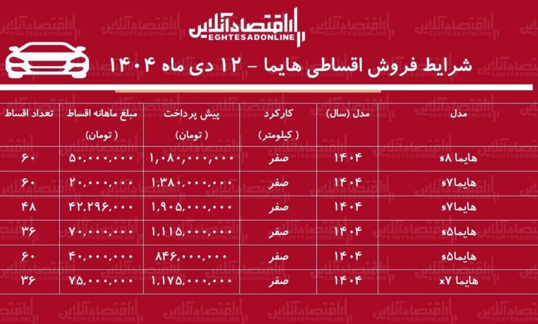 به نقل از خبرگزاری اقتصاد آنلاین، در شرایطی که بازار خودروهای مونتاژی در ایران با تنوع بیشتری مواجه شده است، برند هایما با ارائه شرایط فروش اقساطی جدید، توجه خریداران را به خود جلب کرده است. در این راستا، هایما ۷X با پیشپرداخت یک میلیارد و ۱۷۵ میلیون تومان و اقساط ماهانه ۷۵ میلیون تومان در قالب ۳۶ قسط، به بازار عرضه میشود. این مدل با طراحی مدرن و امکانات پیشرفته، گزینهای مناسب برای افرادی است که به دنبال خودرویی با کیفیت و شرایط پرداخت مناسب هستند.