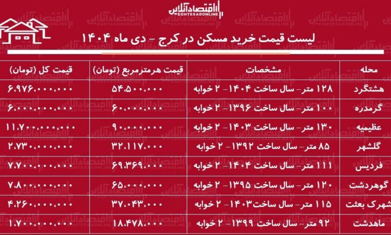 به نقل از خبرگزاری اقتصاد آنلاین، بازار مسکن کرج در دی ماه ۱۴۰۴ به مرحلهای از بازتعریف قیمتها وارد شده است که در آن تفاوتهای قیمتی میان مناطق مختلف به وضوح نمایان است. این بازار چندسرعته، خریداران را با چالشی جدید مواجه کرده است؛ چرا که در یک سو، واحدهای مسکونی با قیمت کمتر از ۲ میلیارد تومان در حاشیه شهر قرار دارند و در سوی دیگر، آپارتمانهای لوکس با قیمتهای بالای ۱۰ میلیارد تومان در محلههای برخوردار به چشم میخورند. این شکاف قیمتی، نه تنها مسیر تصمیمگیری خریداران را پیچیدهتر کرده، بلکه استراتژیهای سرمایهگذاران را نیز تحت تأثیر قرار داده است.