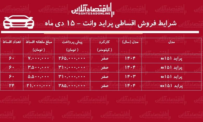 در طرحی دیگر، پراید ۱۵۱ با پیشپرداخت ۳۱۰ میلیون تومان و اقساط ماهیانه ۳ میلیون و ۵۰۰ هزار تومان طی ۶۰ ماه عرضه میشود. این گزینه با کاهش مبلغ قسط، یکی از کمفشارترین انتخابها برای خریداران به شمار میرود. همچنین، برای کسانی که به دنبال تسویه سریعتر هستند، مدل GX این خودرو با پیشپرداخت ۳۸۵ میلیون تومان و اقساط ماهیانه ۲۱ میلیون تومان در ۲۴ قسط به فروش میرسد. این تنوع در شرایط فروش، انعطافپذیری بیشتری به مشتریان ارائه میدهد و انتخابهای متنوعی را پیش روی آنان قرار میدهد.