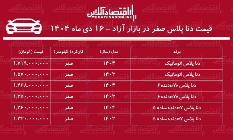 به نقل از خبرگزاری اقتصاد آنلاین، تحلیل‌های اخیر از بازار آزاد خودرو حاکی از آن است که قیمت دنا در تمامی مدل‌ها به طور قابل توجهی افزایش یافته است. این روند صعودی باعث شده تا فاصله قیمتی این خودرو با سطوح پیشین به شکل محسوسی بیشتر شود. در شرایطی که بازار خودرو با نوسانات متعددی روبروست، دنا به عنوان یکی از محصولات پرطرفدار، شاهد افزایش قیمتی بین ۸۴ تا ۲۴۰ میلیون تومان بوده است.
